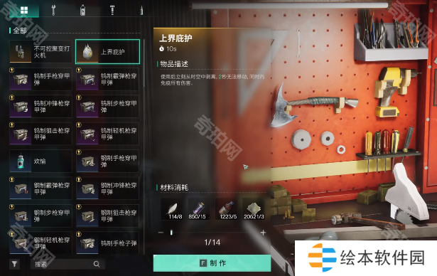 2、收容上界之卵后我们可以在轻型工艺台制作道具,使用后我们会免疫所有伤害,但是无法移动