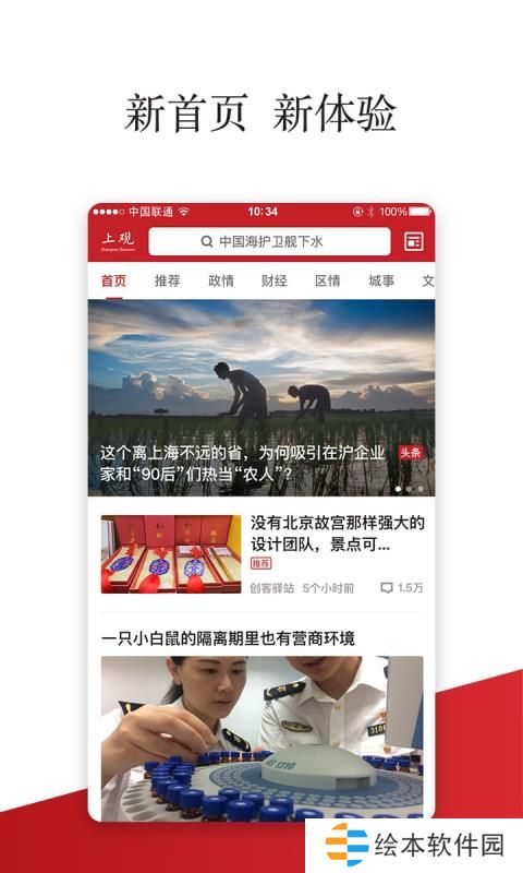 上观新闻使用方法进入app首页,阅读推荐的热门新闻