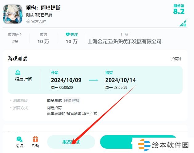 1、复制上方taptap的重构链接来到游戏页面,点击底部的“报名测试”即可填写问卷。