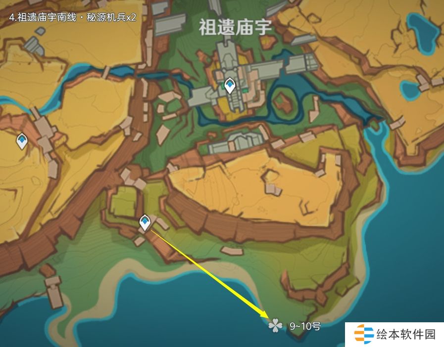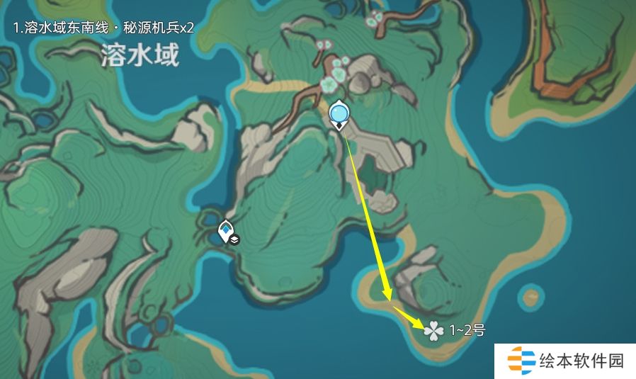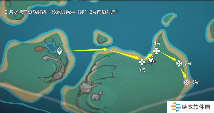 2、溶水域南边岛屿线·秘源机兵x4(即1-2号南边对岸)