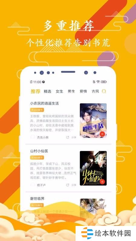 将小说进行了分类,多种分类类型小说都可以自由挑选;