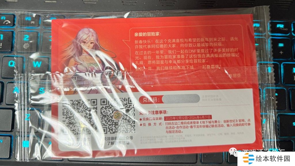 购买“DNF幸运增幅礼盒”或“DNF好运添福礼盒”后,收到货打开礼盒会看到DNF霸福券1张,刮开卡片反面兑换码即可兑换1份联动礼包。