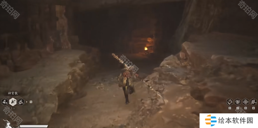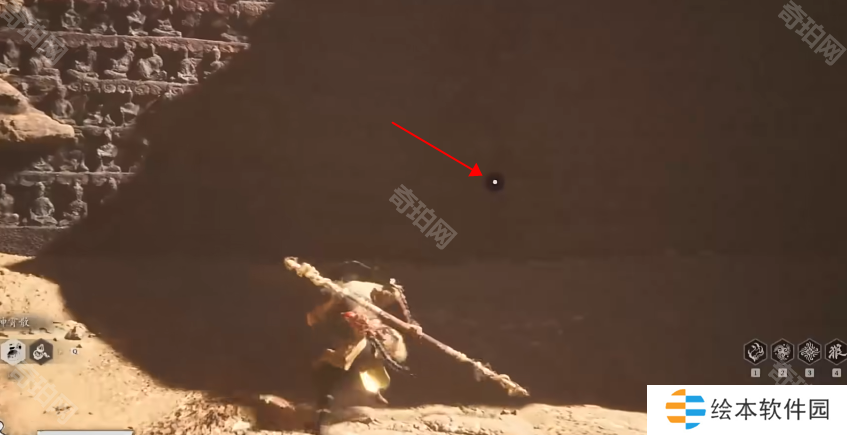 2、传送后前往如图所示漆黑的洞穴,往里走