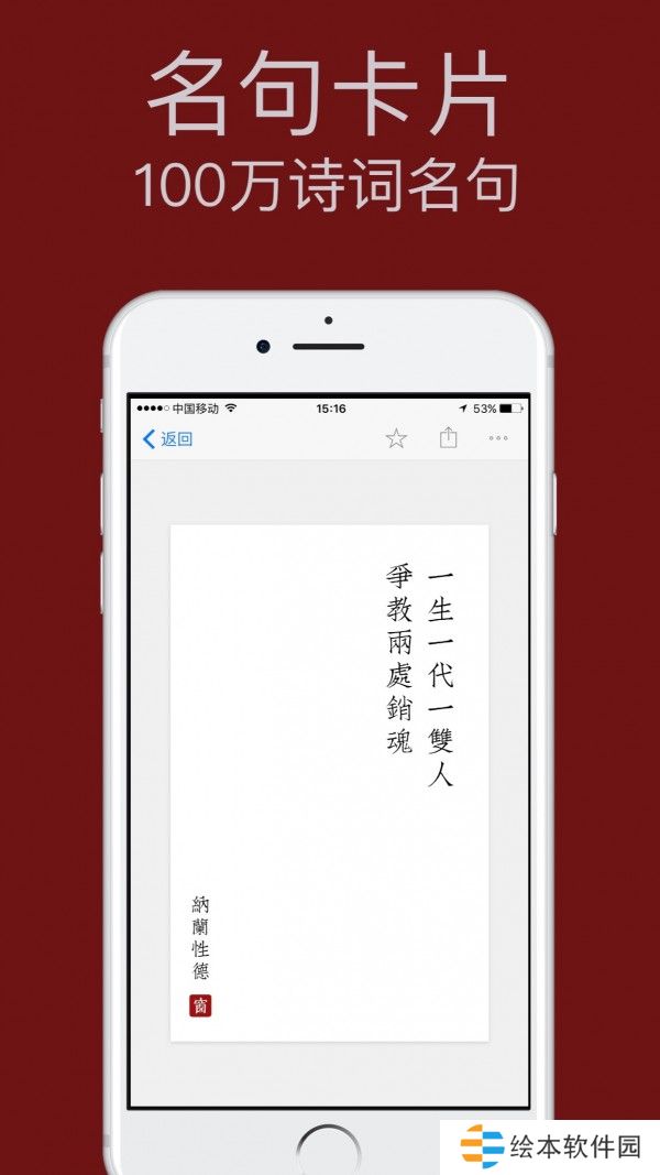 【名句卡片】精选数万条诗词名句,卡片式切换翻阅,可自由制作卡片,简繁切换、字体切换。