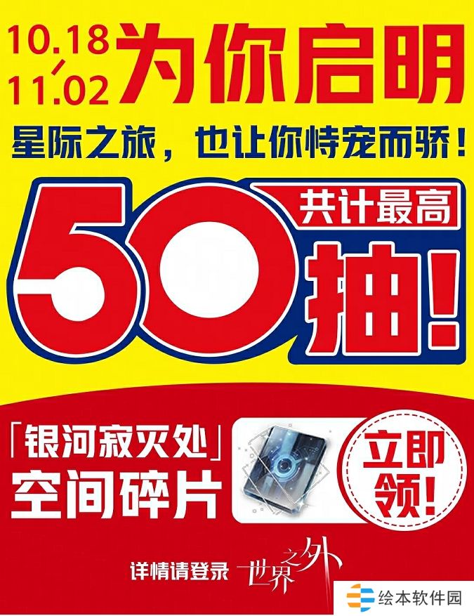 10月18日8:00-11月2日3:59,满足条件的玩家登录《世界之外》,即可领取大量「银河寂灭处空间碎片」,可在限时开放的「银河寂灭处世界之间」感召使用。