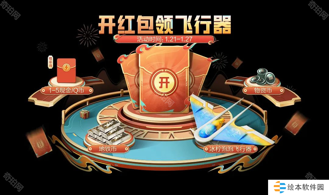 集齐五种不同福卡合成红包后就有机会获得现金/Q币,同时开8次红包必得飞行器-冰柠泡泡
