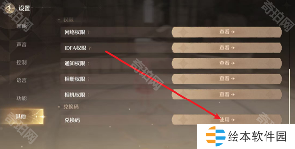 3、下滑右侧页面,找到兑换码,点击后方的使用