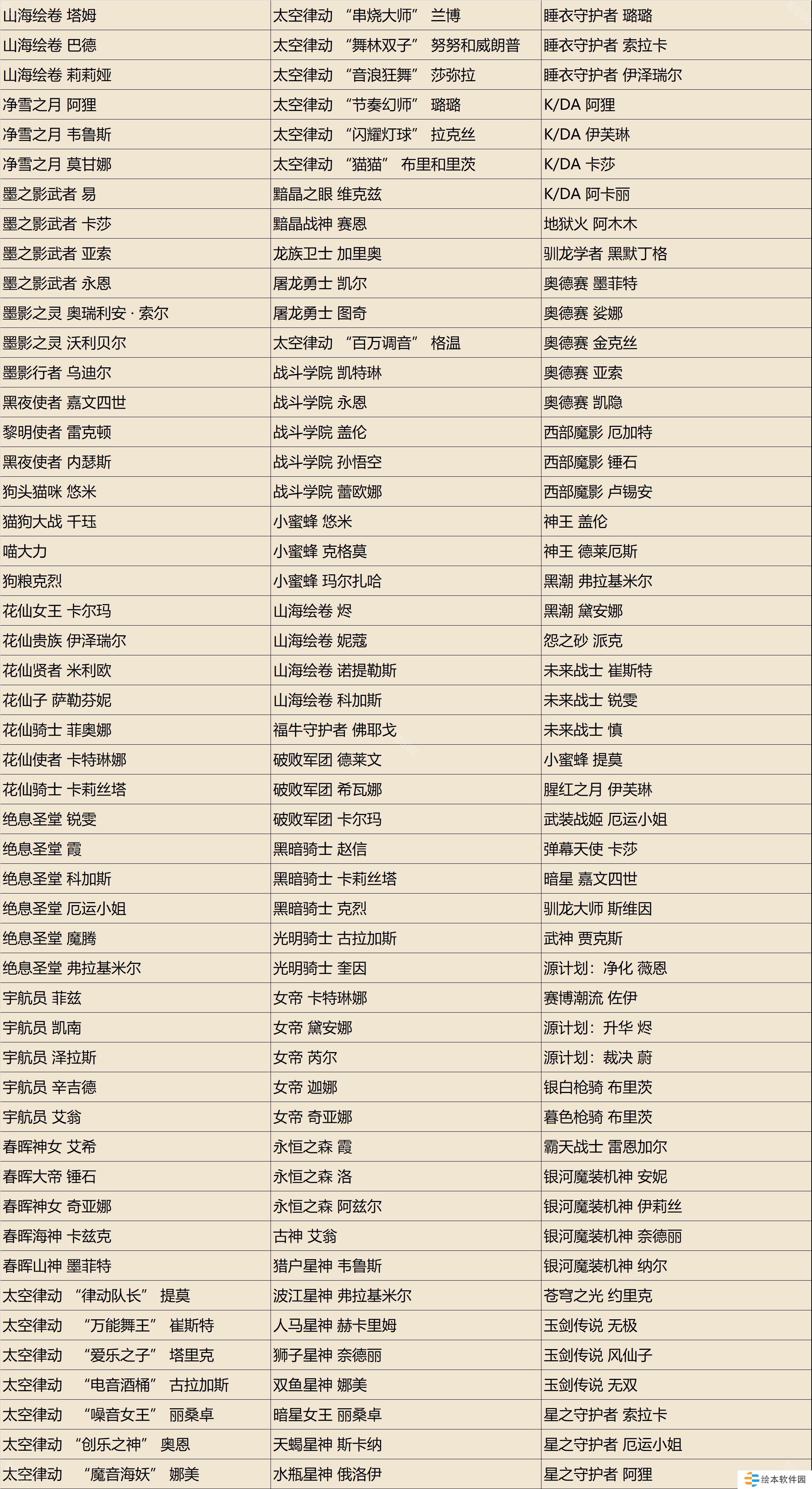 注:所有下表中所列的炫装皮肤在半价期间暂停炫装优惠价格,以五折价格销售,半价结束后恢复炫装优惠价格。
