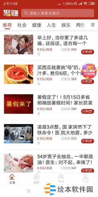 聚转资讯赚钱版软件优势大量的新闻都可以及时的转发,可以给更多的人查看和分享哦!