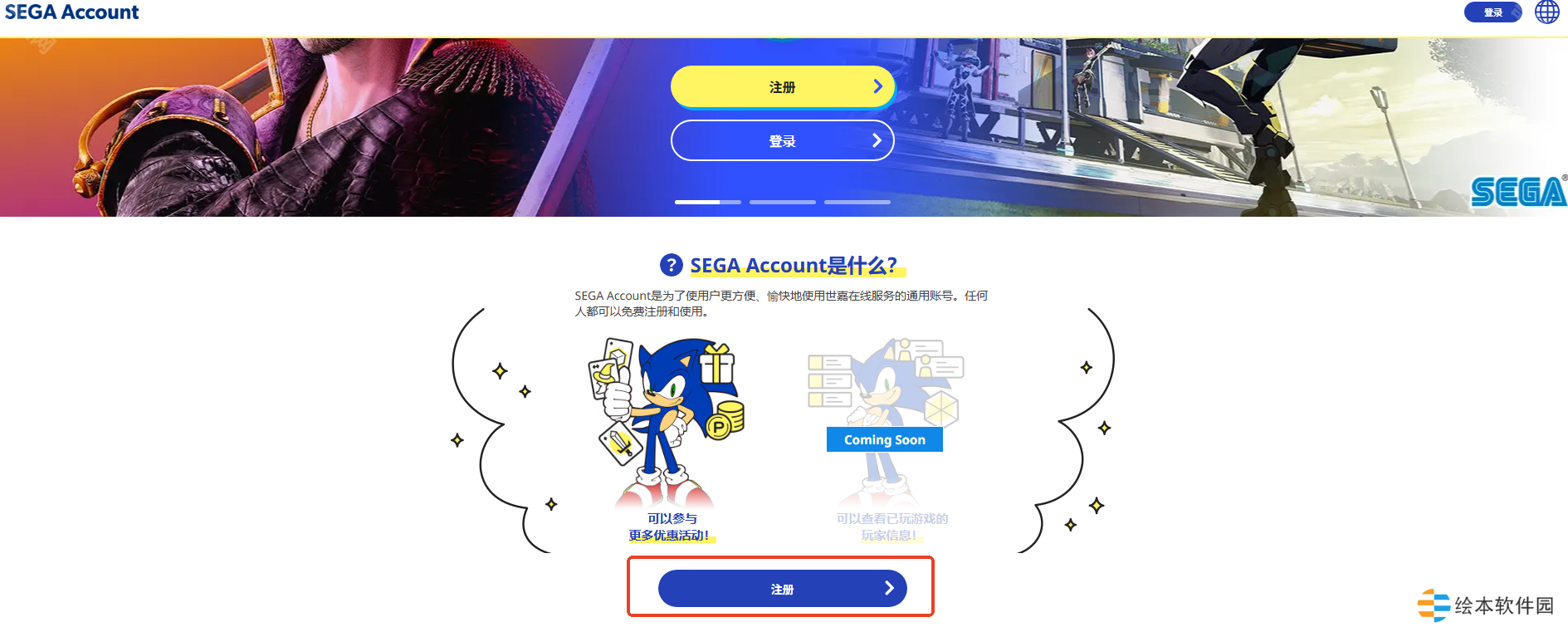 SEGA Account注册页面:https://sega-account.com/
