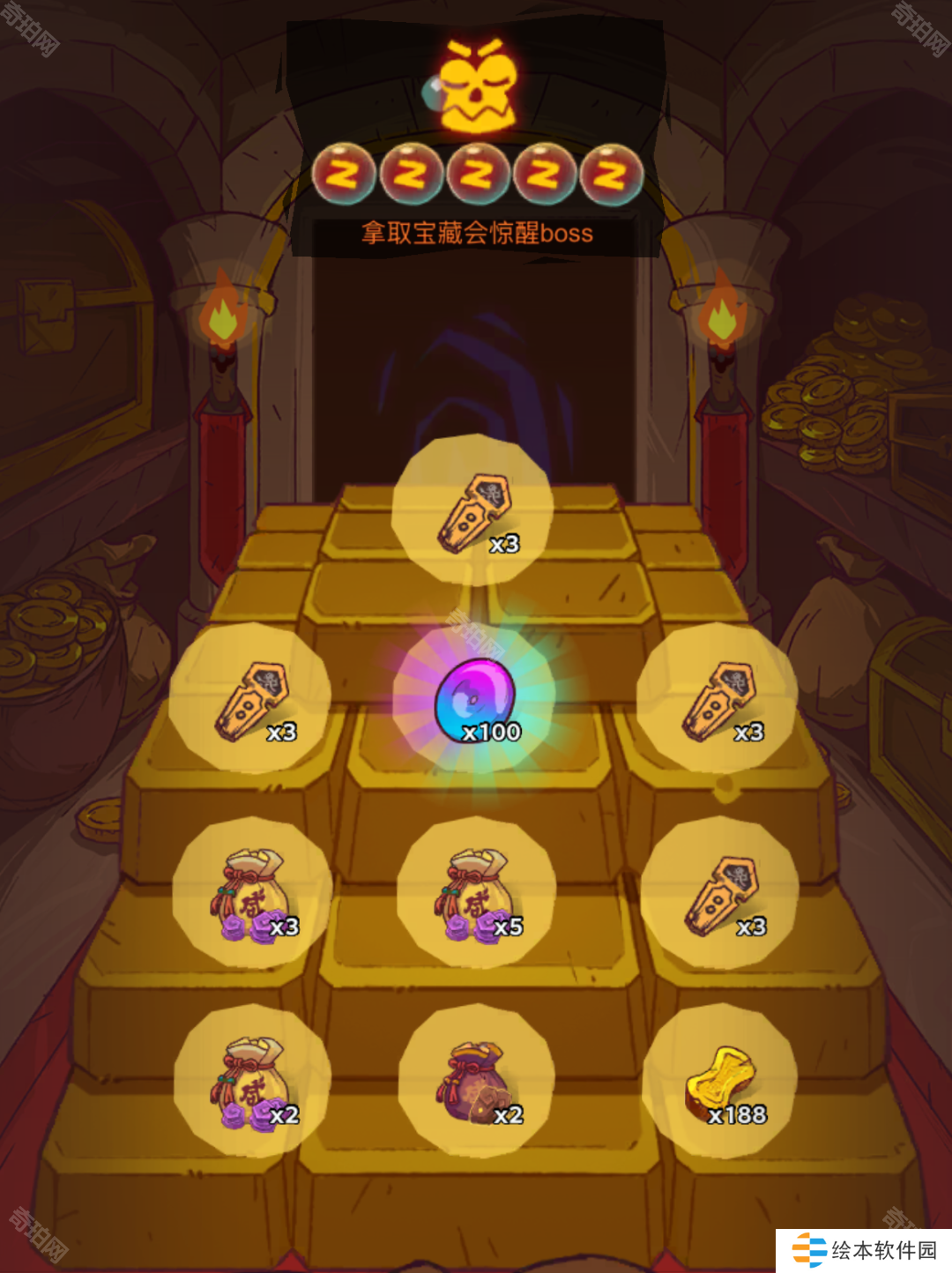 2、击败保险门卫,会随机出现10份宝藏奖励,小伙伴们可在其中挑选5份