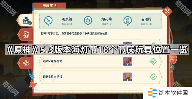 原神5.3海灯节观景镜/烟花筒/吉语钱在哪-5.3版本海灯节18个节庆玩具位置一览