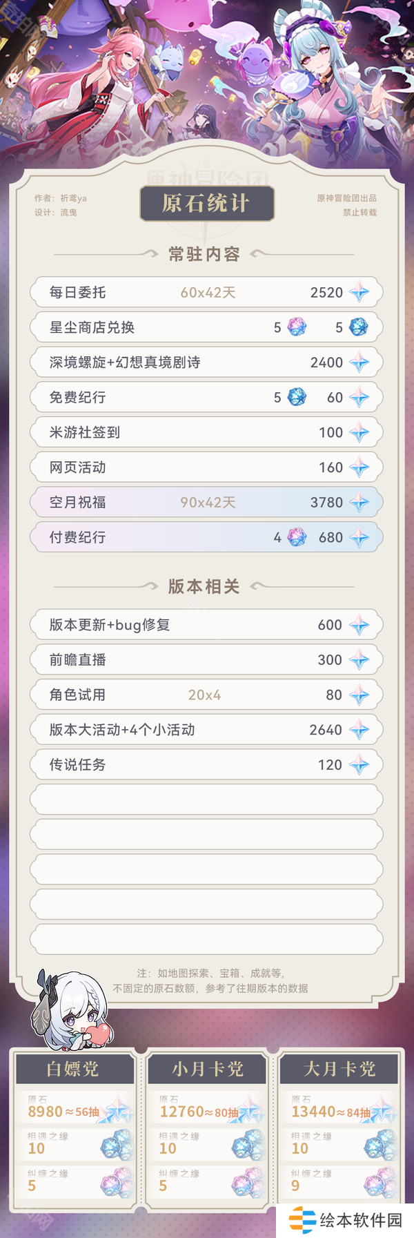 二、5.4版本各玩家可获取原石数量