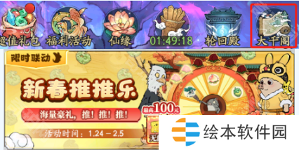 活动位置在游戏内最上的大千阁里面,打开大千阁第二个主题就是联动活动新春推推乐!最高可以获得100元美团劵!点击进去之后需要绑定角色(必须微信区角色)才可以参与!