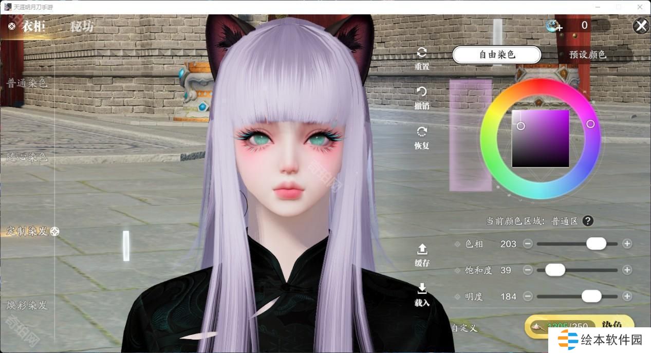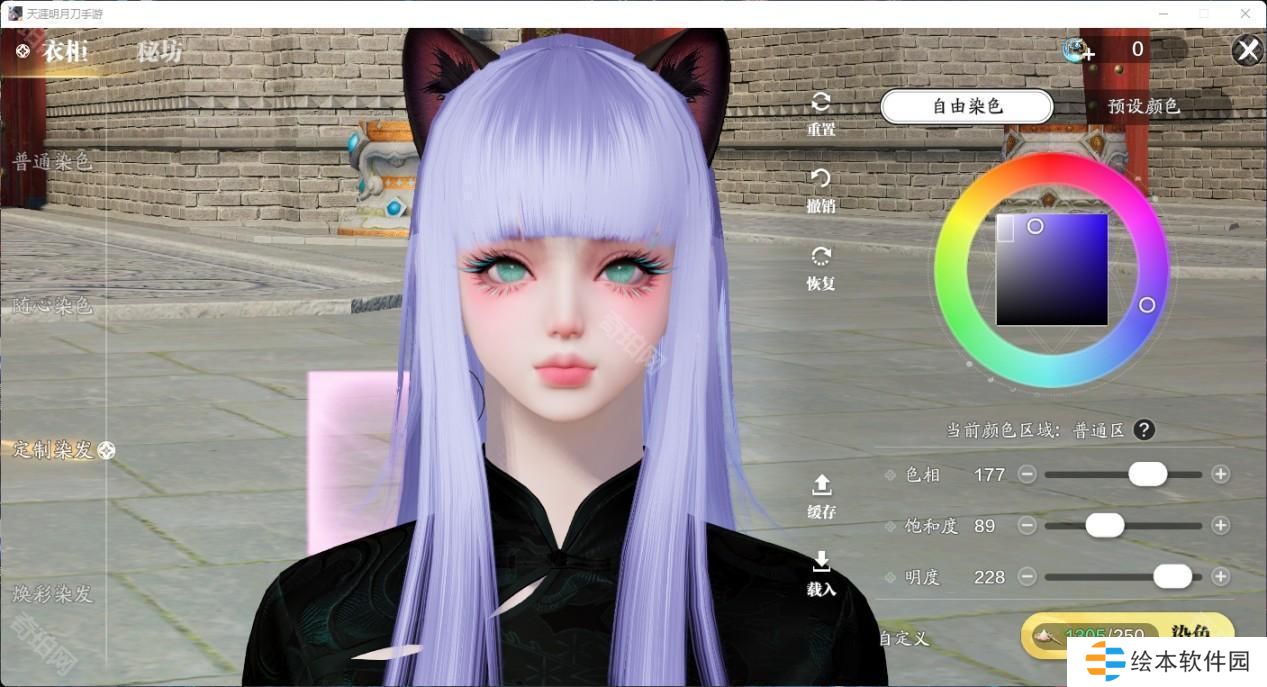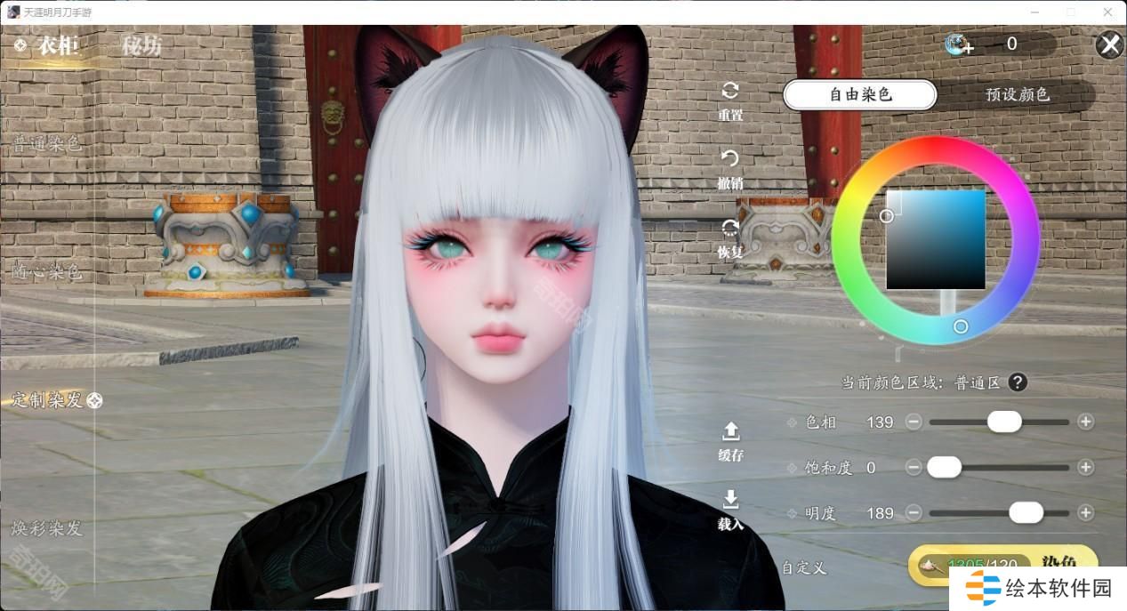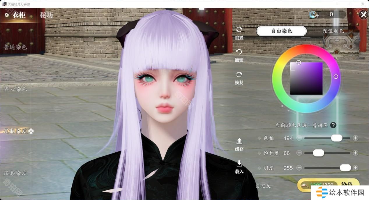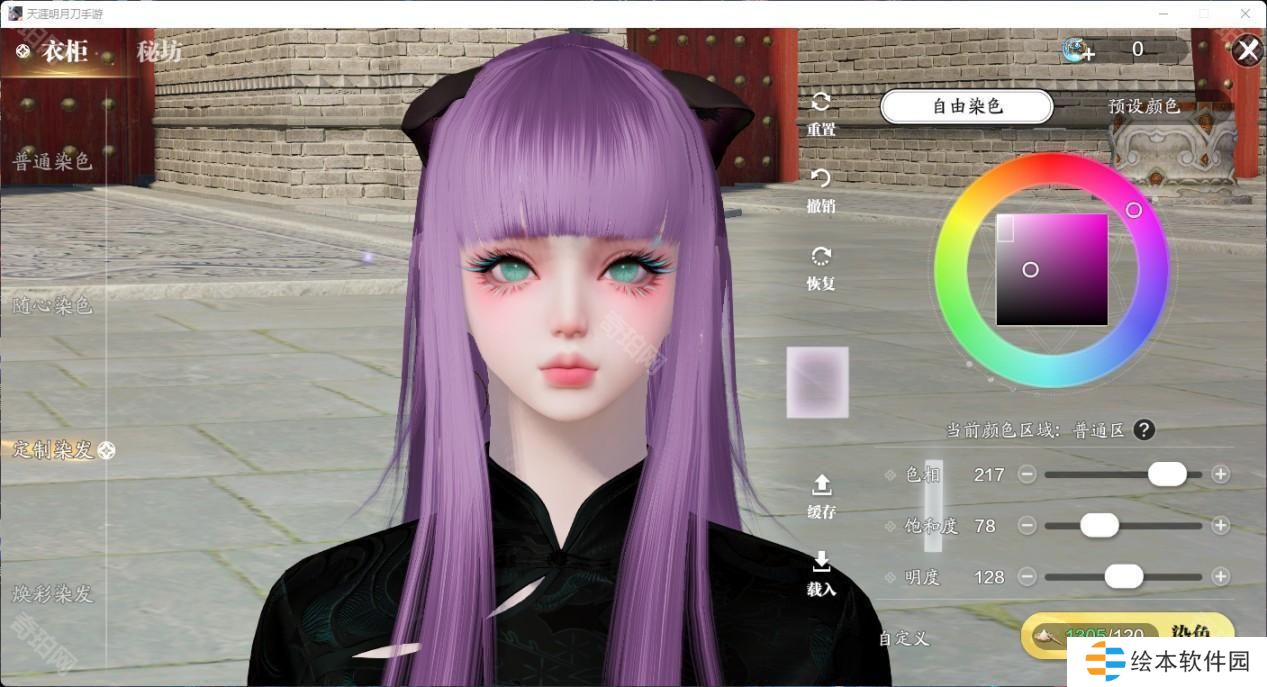 有了这个自由发挥的色盘,各种浅发色更是成为了天刀潮人们的必备发色。有一些颜色可以说是非常有动漫感,做一下天刀COS不在话下。推荐大家清冷紫和砂色,明度做了压暗,不会因为过高的明度显得俗气,搭配衣服也非常耐看。