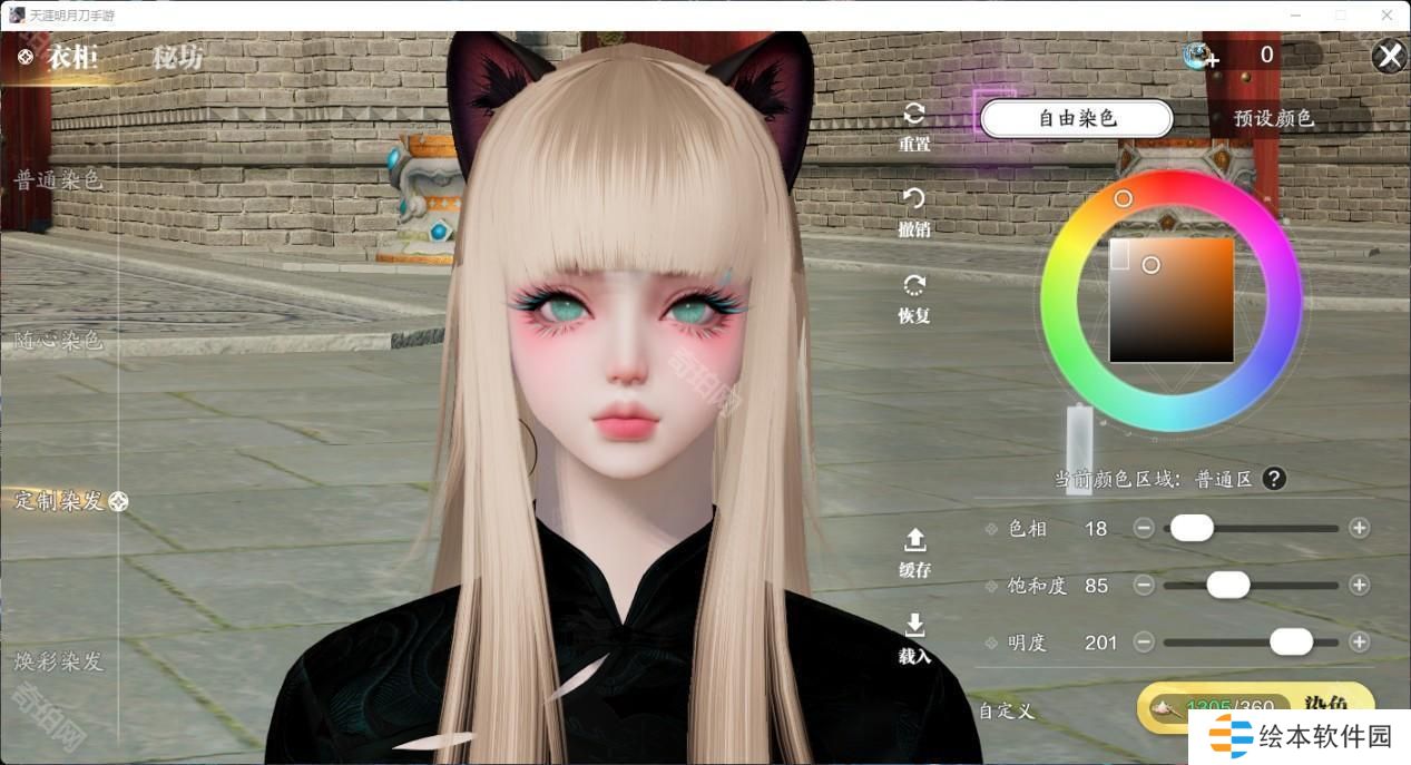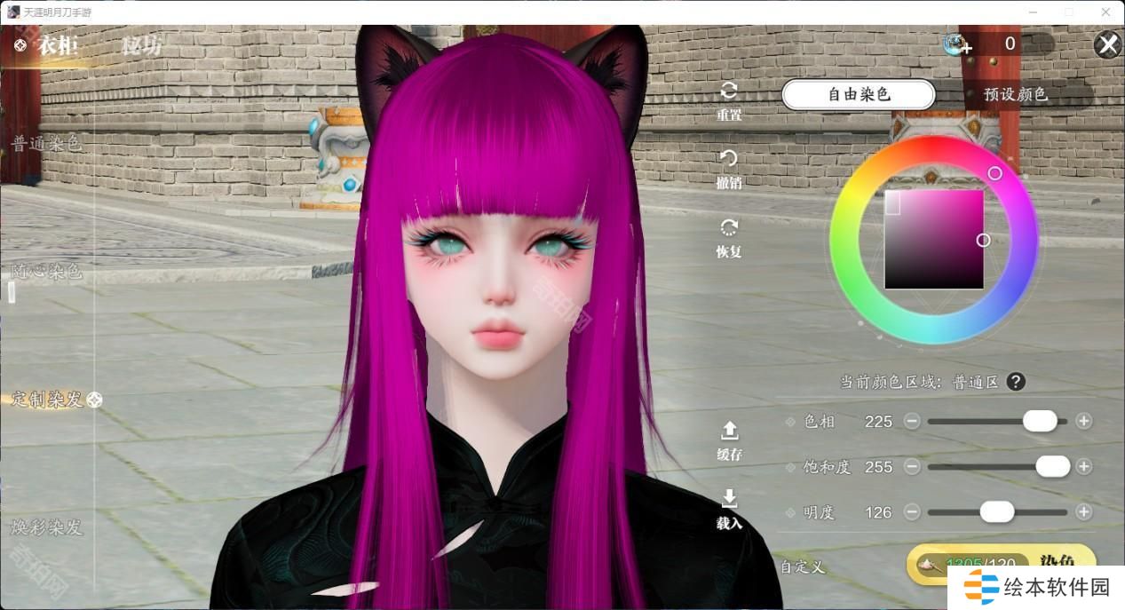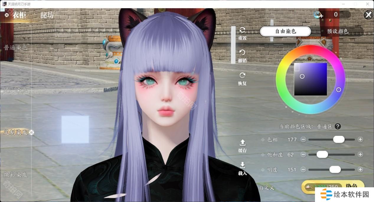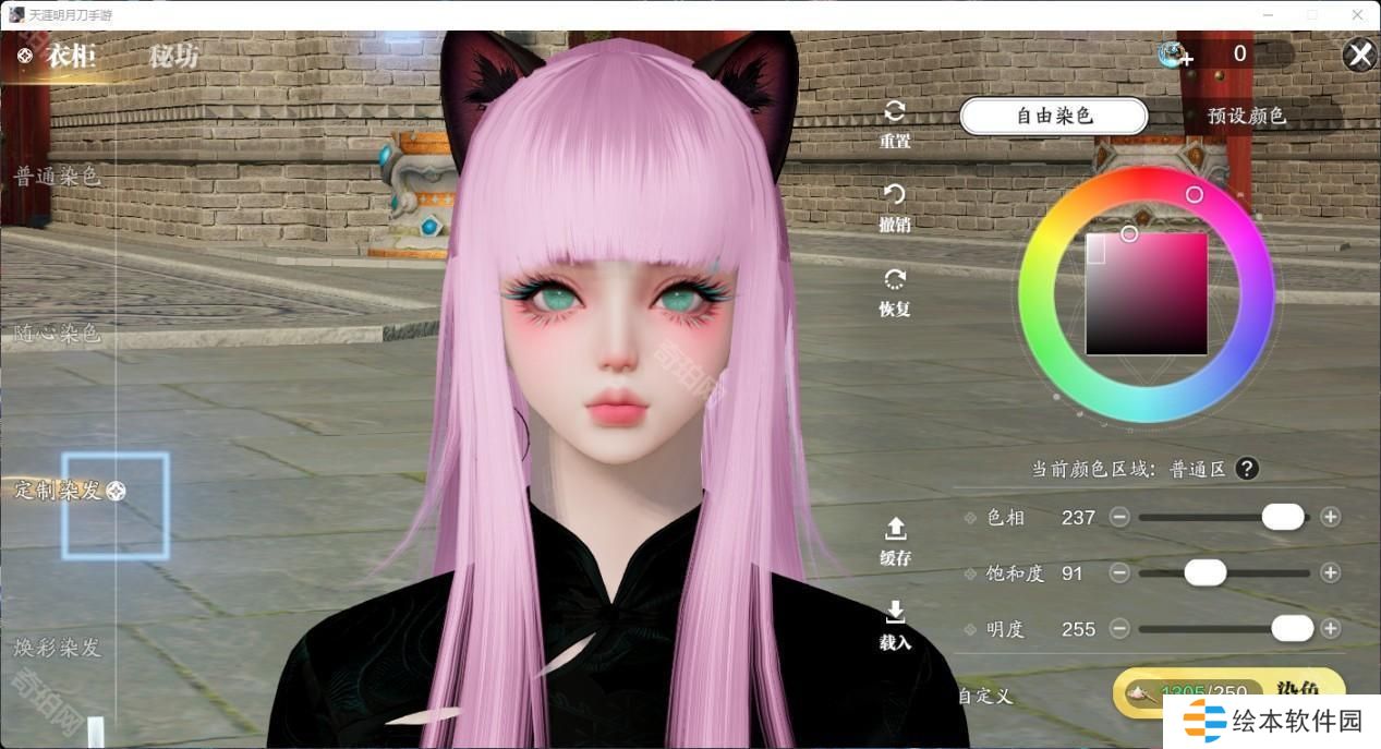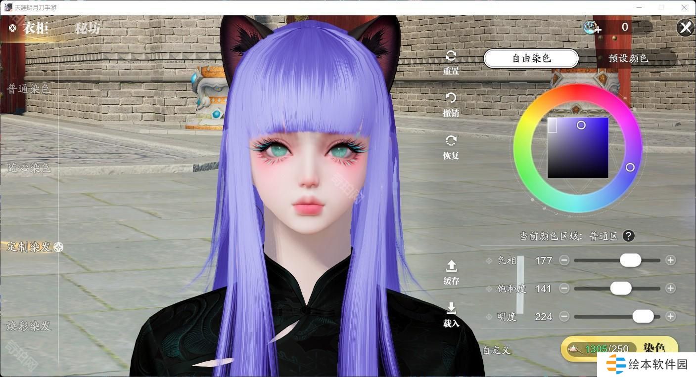 有了这个自由发挥的色盘,各种浅发色更是成为了天刀潮人们的必备发色。有一些颜色可以说是非常有动漫感,做一下天刀COS不在话下。推荐大家清冷紫和砂色,明度做了压暗,不会因为过高的明度显得俗气,搭配衣服也非常耐看。