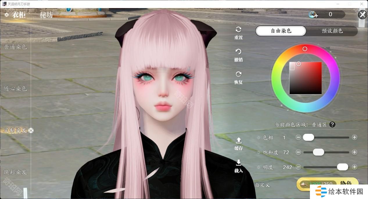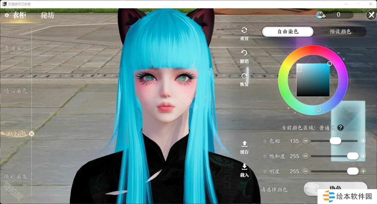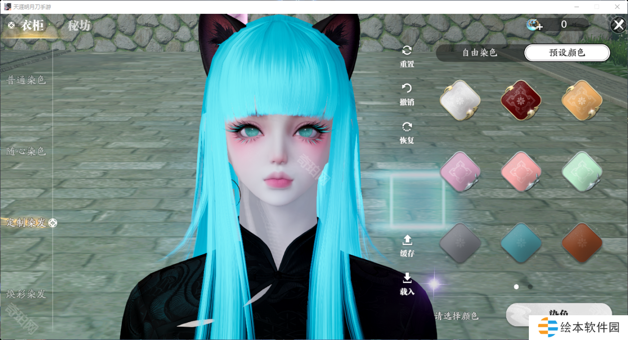 2、接下来我们可以看到自由染色和预设染色的选项,大家根据自己的需要点击相应的色盘即可。
