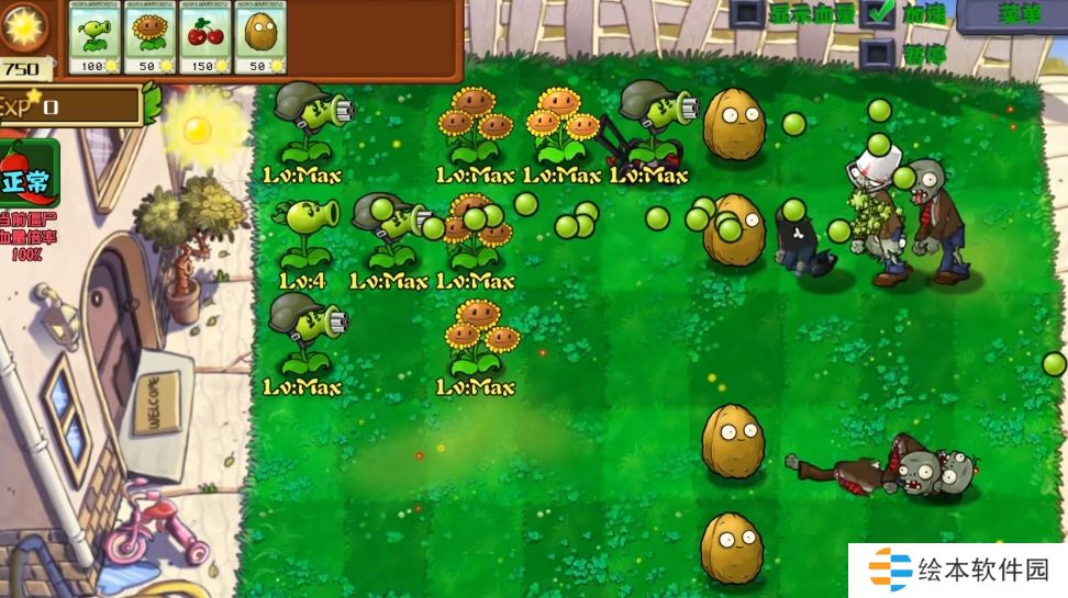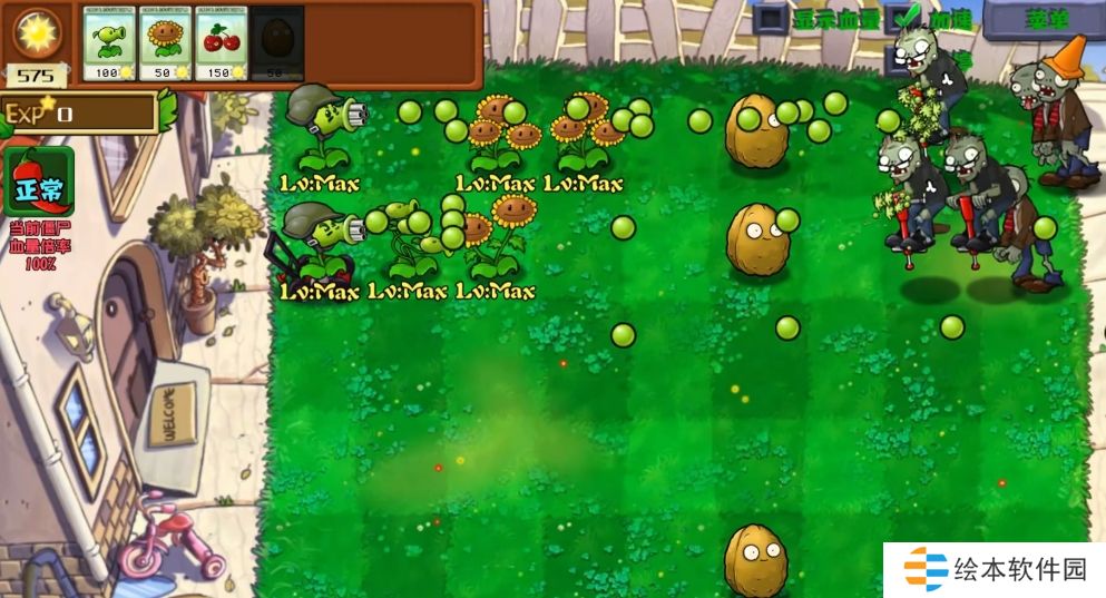 豌豆射手LV.4:攻速:0.375秒(翻3倍)