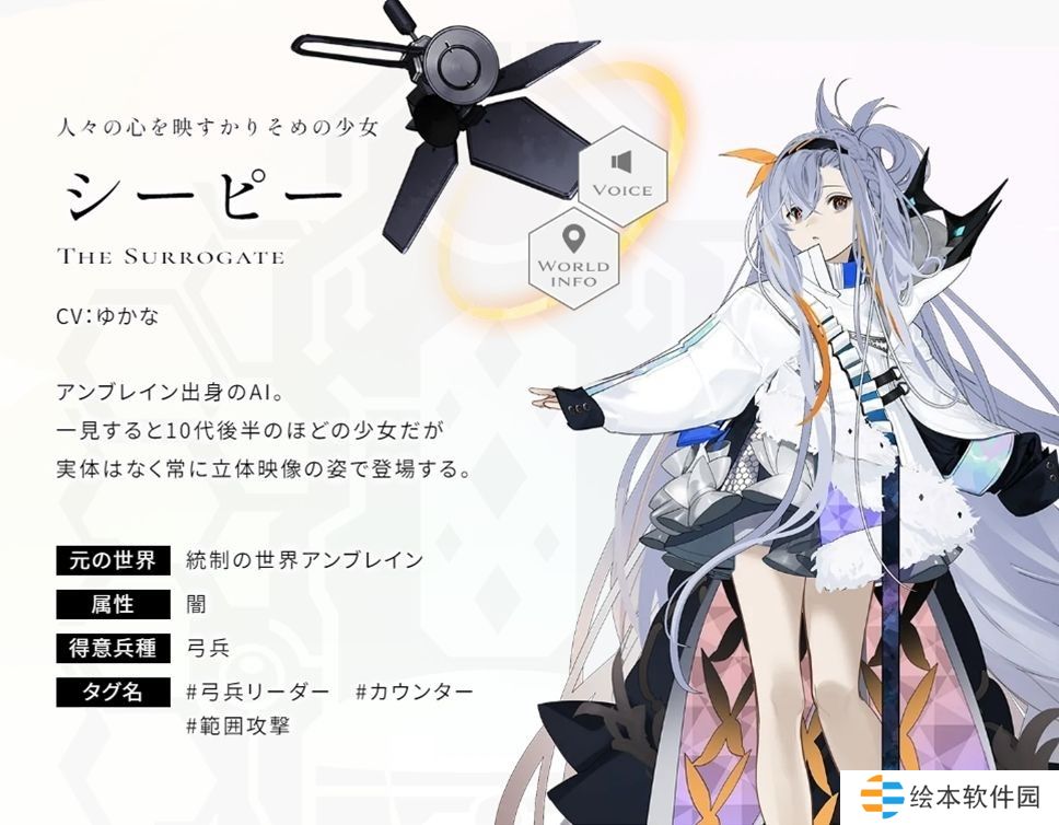 安布雷因出身的 AI。外表看似 10 多岁的少女,实则并非实体,总是以立体投影的模样登场。