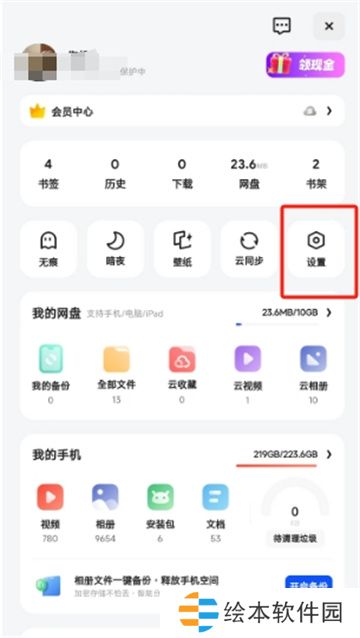 1、首先打开夸克浏览器,点击个人页面的“设置”。