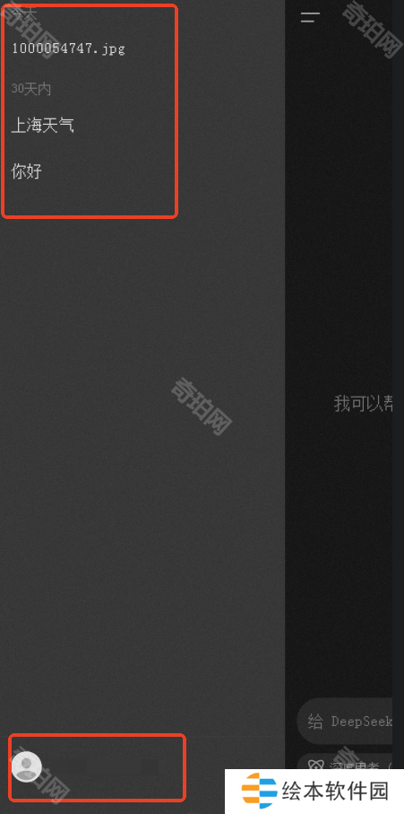 ②左上角的2条横杠为菜单,点击后可以在左侧查看历史对话并对账号和软件进行设置