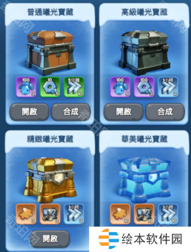 2、普通曦光宝藏可合成高级曦光宝藏,高级曦光宝藏概率合成精致曦光宝藏或华美曦光宝藏,精致曦光宝藏和华美曦光宝藏无法继续合成。