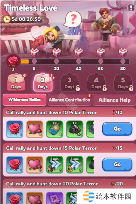 这个活动比较特殊,是情人节专属活动,和情人节领主是独立的。以联盟为主体,总共分为三类活动,联盟集结、联盟捐献联盟互助。耗时5天,和情人节领主以及一些子活动会有重合,届时如果上线会给大家讲清楚怎么刷最合适。完成任务获得粉红玫瑰,5/20/40/60/80朵分别可获得累计奖励。