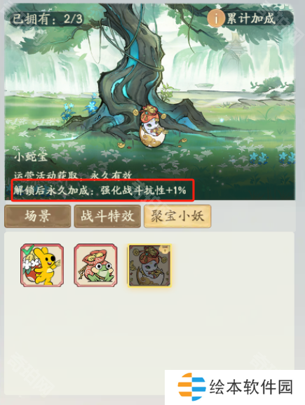 在幻境阁中有皮肤切换的地方,在这次新春活动的战令中,有一个聚宝小妖皮肤,还有属性加成!