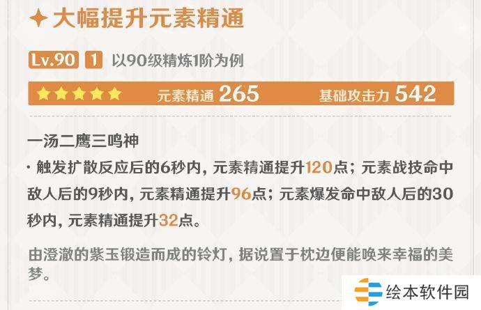 元素爆发命中敌人后的30秒内,元素精通提升32点