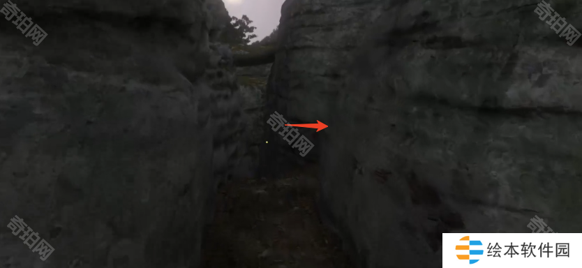 3、到达任务地点后,我们首先走过第一个石头,然后立马右转,这时会发现有一个小路