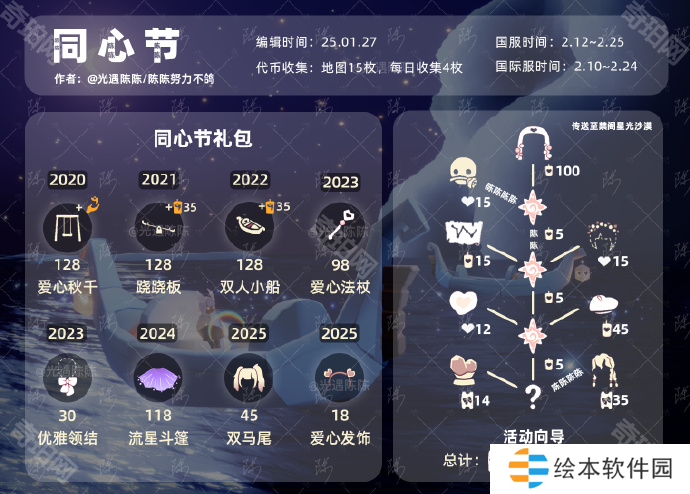 光遇2025同心节活动有哪些物品?游戏光遇2025同心节将于2月12日正式开启,活动期间我们每天都需要收集活动代币,活动代币可以在活动先祖处兑换相应的物品。那么感兴趣的小伙伴接下来就和小编一起看看《光遇》2025同心节活动兑换图分享吧。