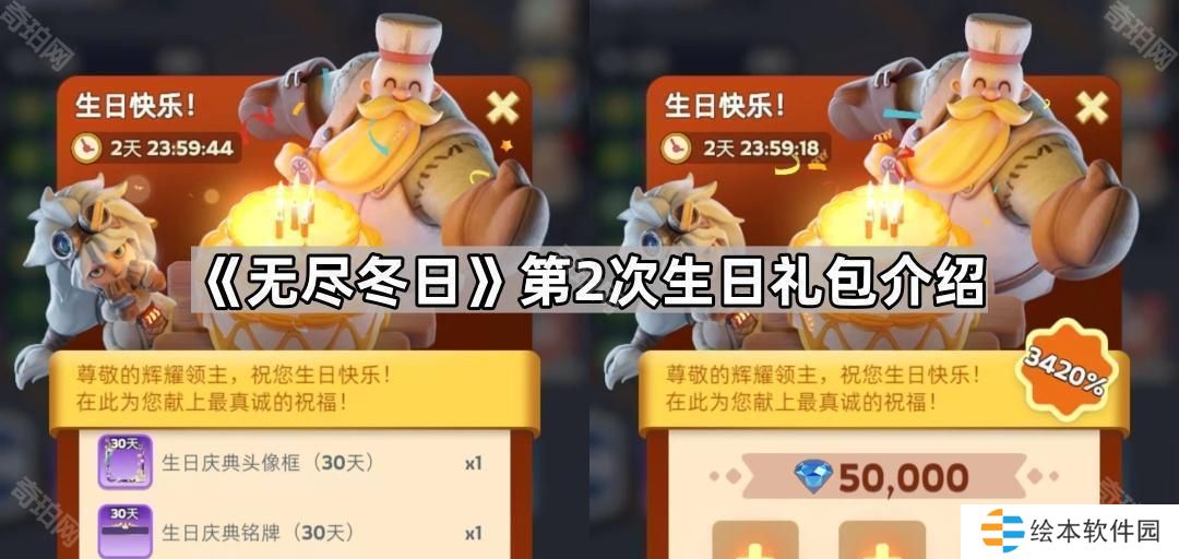 无尽冬日第2次生日礼包怎么样?在游戏无尽冬日中我们可以设置自己的生日,在生日当天可以在游戏中获得奖励并且开启限时生日礼包,每年的生日礼包内容都会有一些不同。那么第二次生日礼包有哪些内容呢?接下来就和小编一起看看《无尽冬日》第2次生日礼包介绍吧。