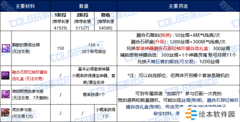以下是维纳斯军团本各难度有关融合石部分主要可获得的材料道具。