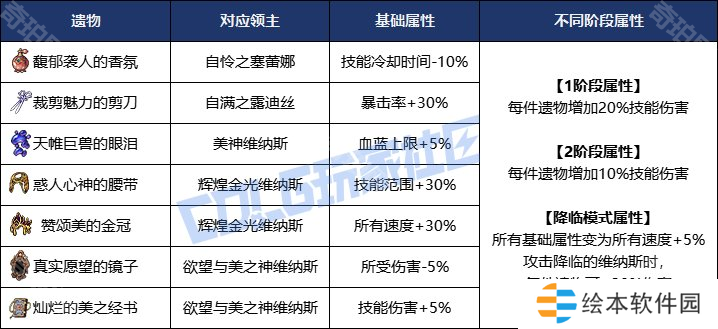 与以往的军团本不同的是,维纳斯军团本的增伤buff,是通过遗物系统提供的。