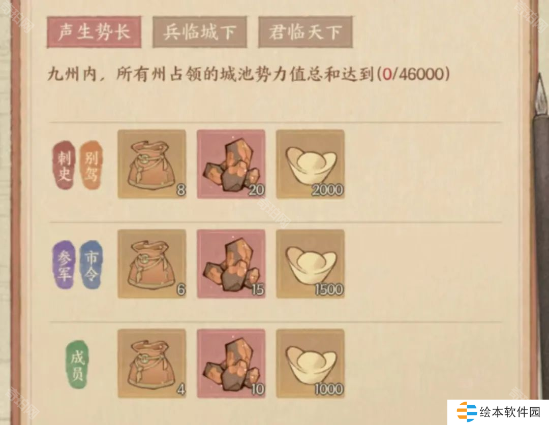 ②鸿图伟业任务的奖励,弱州成员即使躺平也是可以拿的(只要区内强州足够积极),唯一存在难度的是声生势长这个部分,需要所有州占领的城池势力值总和达到4.6w,要完成这个,区内可能需要多几个州拿些城,而兵临城下和君临天下部分的奖励,等着强州占领特定城就好了,这些奖励是区内共享的,美其名曰“协力攻城”。