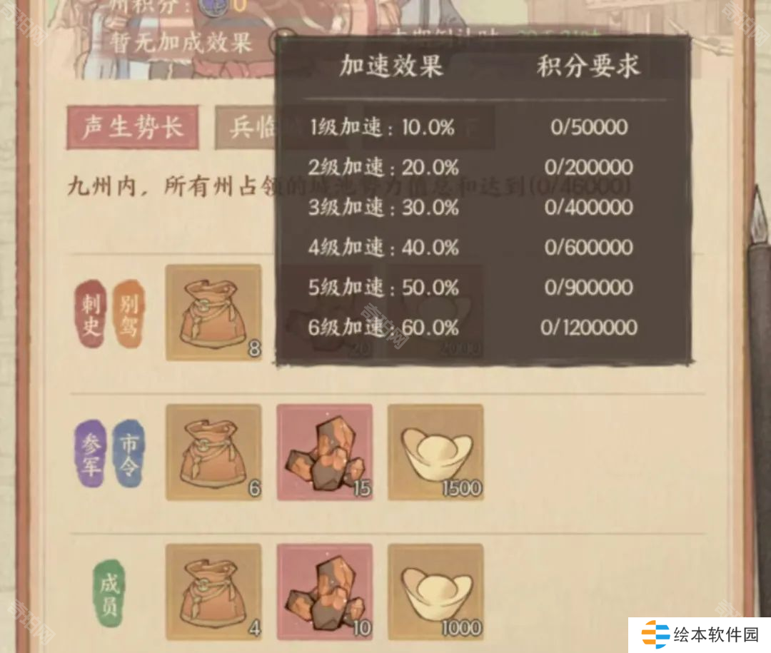 ③而鸿图伟业加速效果的奖励就分州和层次了,需要州内成员共同努力,获取州积分,州积分达到要求后即可解锁相应等级的加速效果。