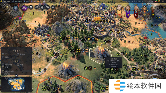 开局大堡礁+四个玉+一个盐 往左下走沿着小路进去,十格内分城坐多资源红木森林,旁边还有火山给红木森林再额外加食物产能 主城右下阴影处城邦就有双骆驼