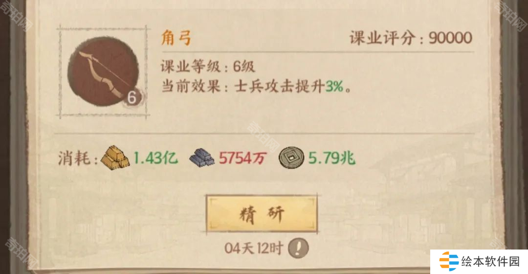 ②军事发展→兵法谋略——可暂时精研所需势力的项目,以后慢慢弄完。