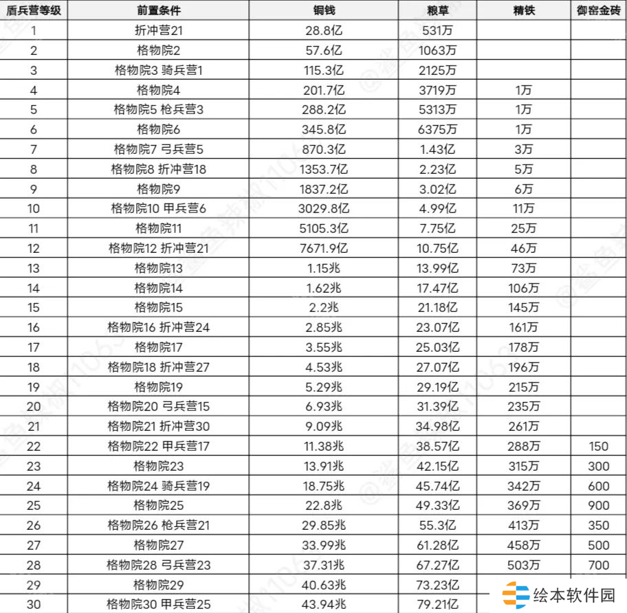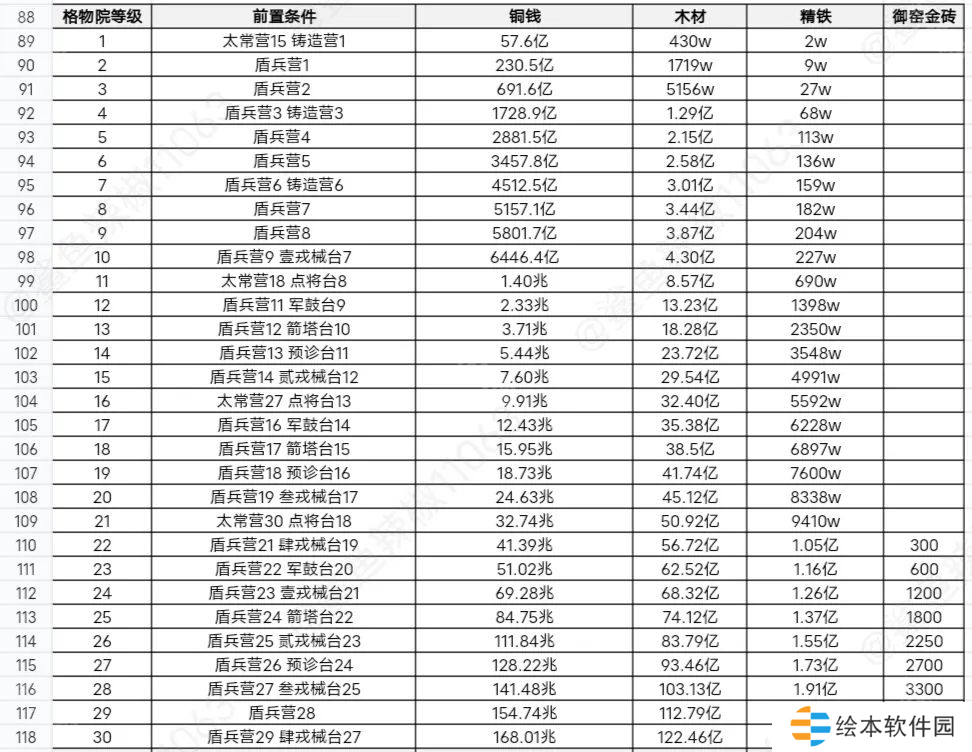 格物院的升级又需要盾兵营的等级,因此盾兵营也不能被卡住,也要注意它的前置条件