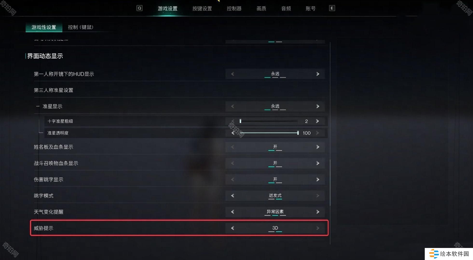 答:设置-游戏设置-游戏性设置-界面动态显示-威胁显示