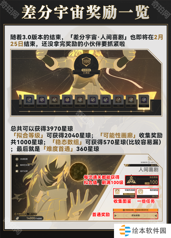 崩坏星穹铁道差分宇宙人间喜剧怎么速刷?游戏崩坏星穹铁道中差分宇宙每过一段时间都会进行主题更换,有许多小伙伴发现自己的等级还没有刷满,那么我们怎样可以快速刷完本次主题的等级呢?接下来就和奇珀小编一起看看《崩坏星穹铁道》差分宇宙人间喜剧速刷指南吧。