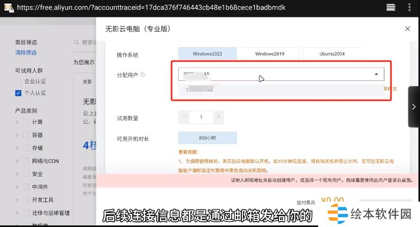 6、可以看到一分钱不用就能白嫖三个月且800小时的云电脑。点击立即试用,然后就领取成功了。