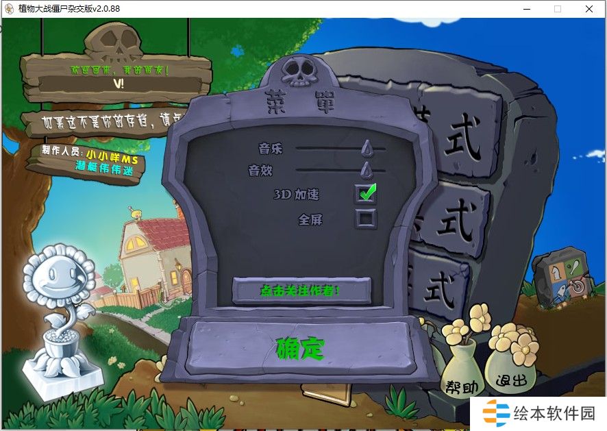 2、点击选项-勾选全屏,游戏难度模式可以在右下方位置进入控制台,包括僵尸血量显示、植物血量显示、自动收集、游戏加速、不送小推车等等功能。