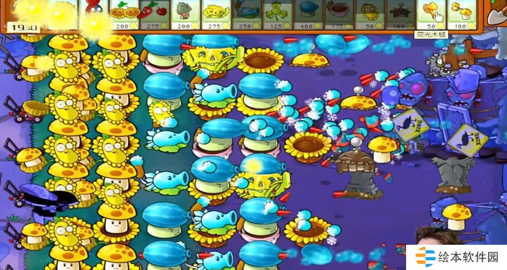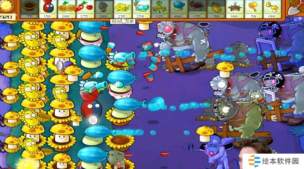 2、最后一排放满阳光菇投手,打不过的路及时放磁铁土豆阻拦。