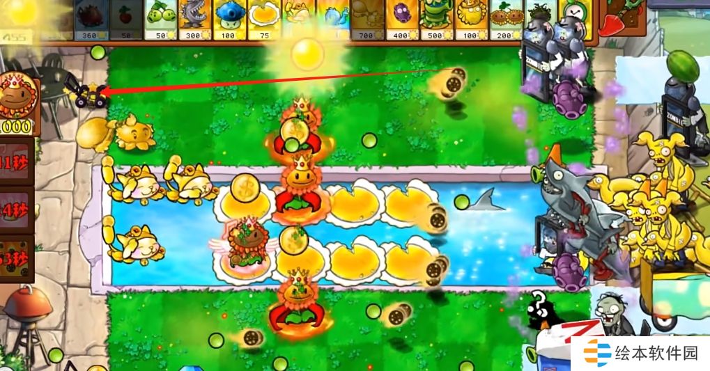 3、在有强力的僵尸到来时就可以使用这个车轮重塑者可以直接毁灭一整行僵尸。
