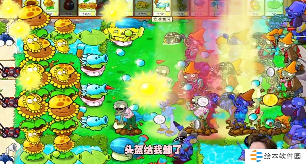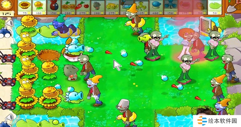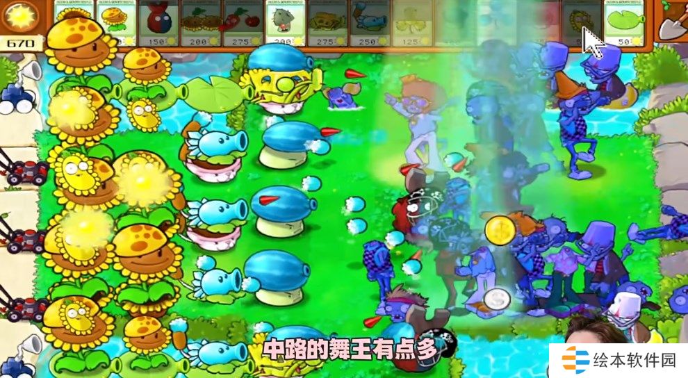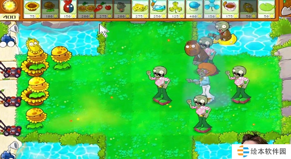 2、在水里种植豌豆睡莲,用豌豆睡莲来攻击僵尸。