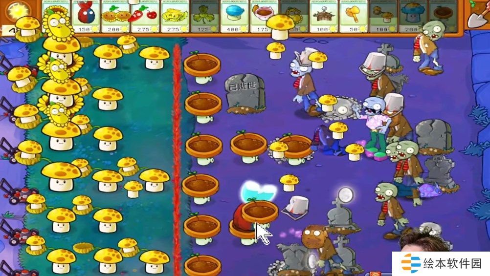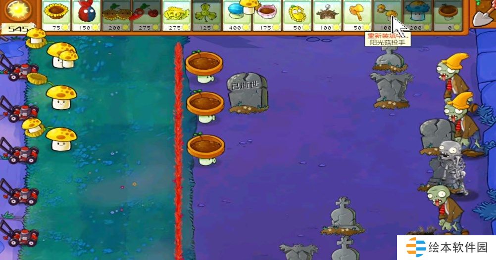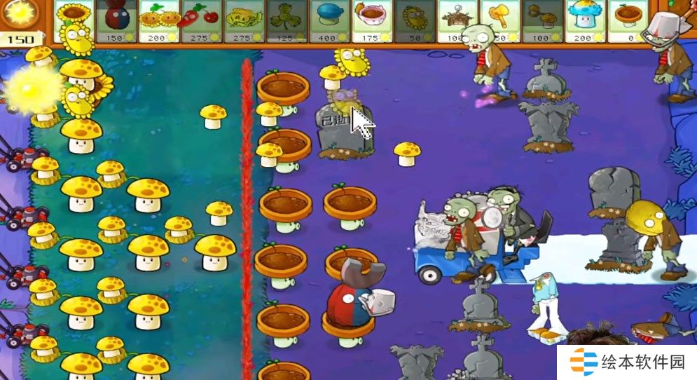 1、这一关有免费的小盆菇可以使用,在后排种植阳光菇投手,前面放置小盆菇阻拦僵尸。