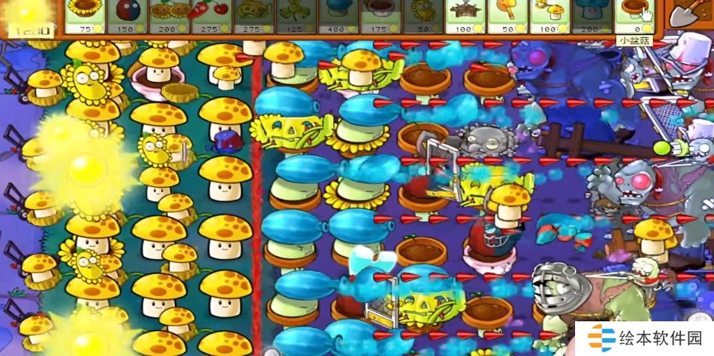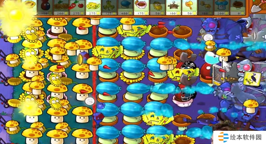 4、放置一点冰瓜大喷菇,这个伤害很高,可以在前面多布置一些。