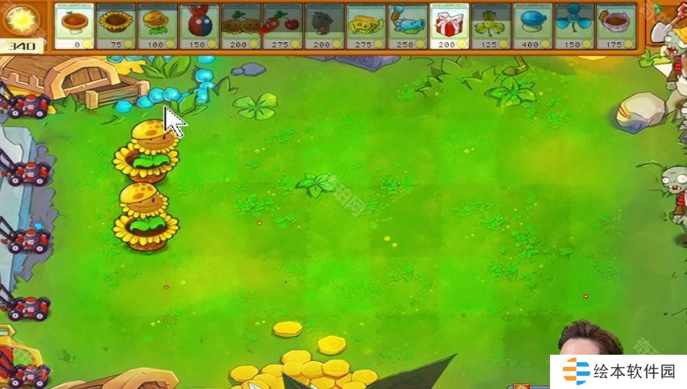 1、这一关只有四路可以布置植物,我们在后排布置花盆种植向日葵,注意两边的僵尸,及时防御。