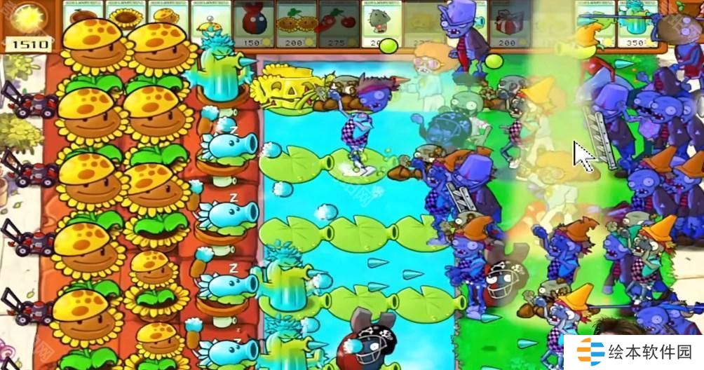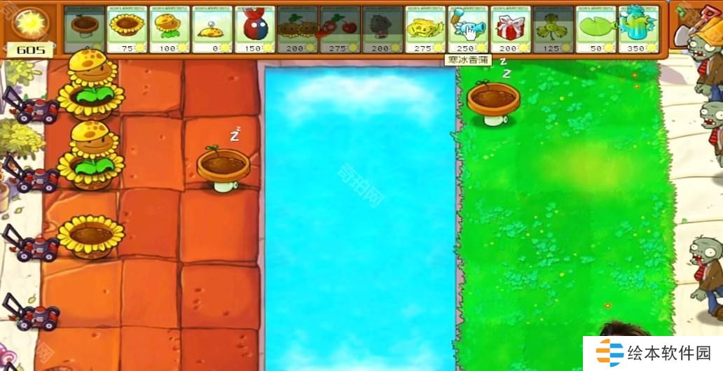 4、可以多放一点大蒜花来攻击僵尸,水池里面多放睡莲。